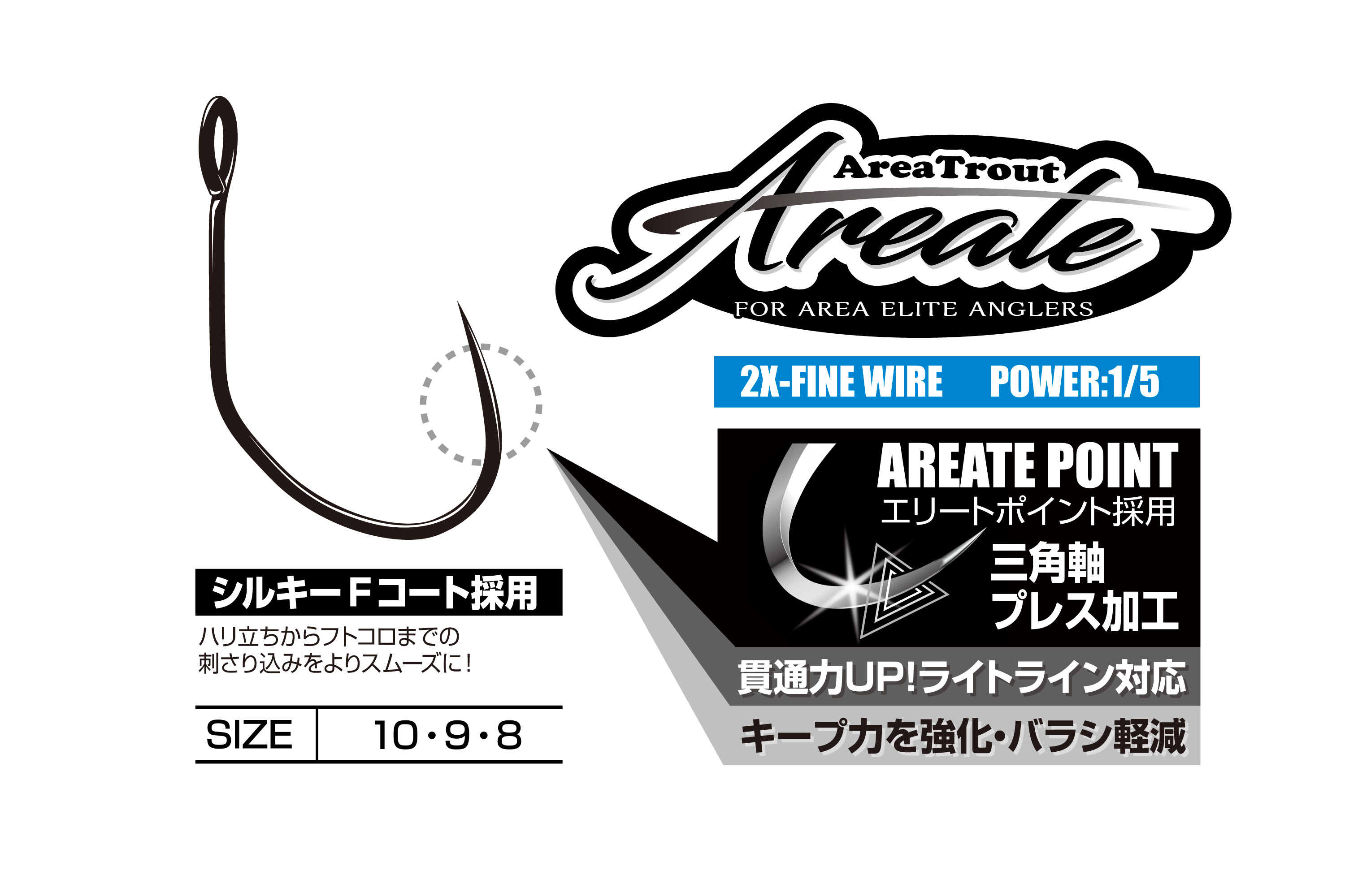 ●刺さりこみと保持力を両立するAREATE POINT(エリートポイント)採用。
