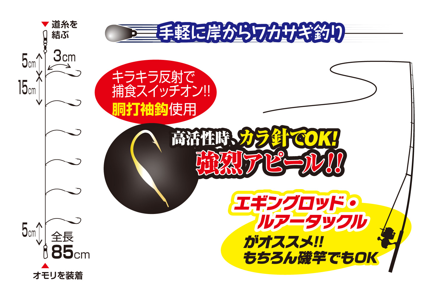 ●ナイロンハリス:幹糸 2→1.5号,2.5→2号/エダス0.3号